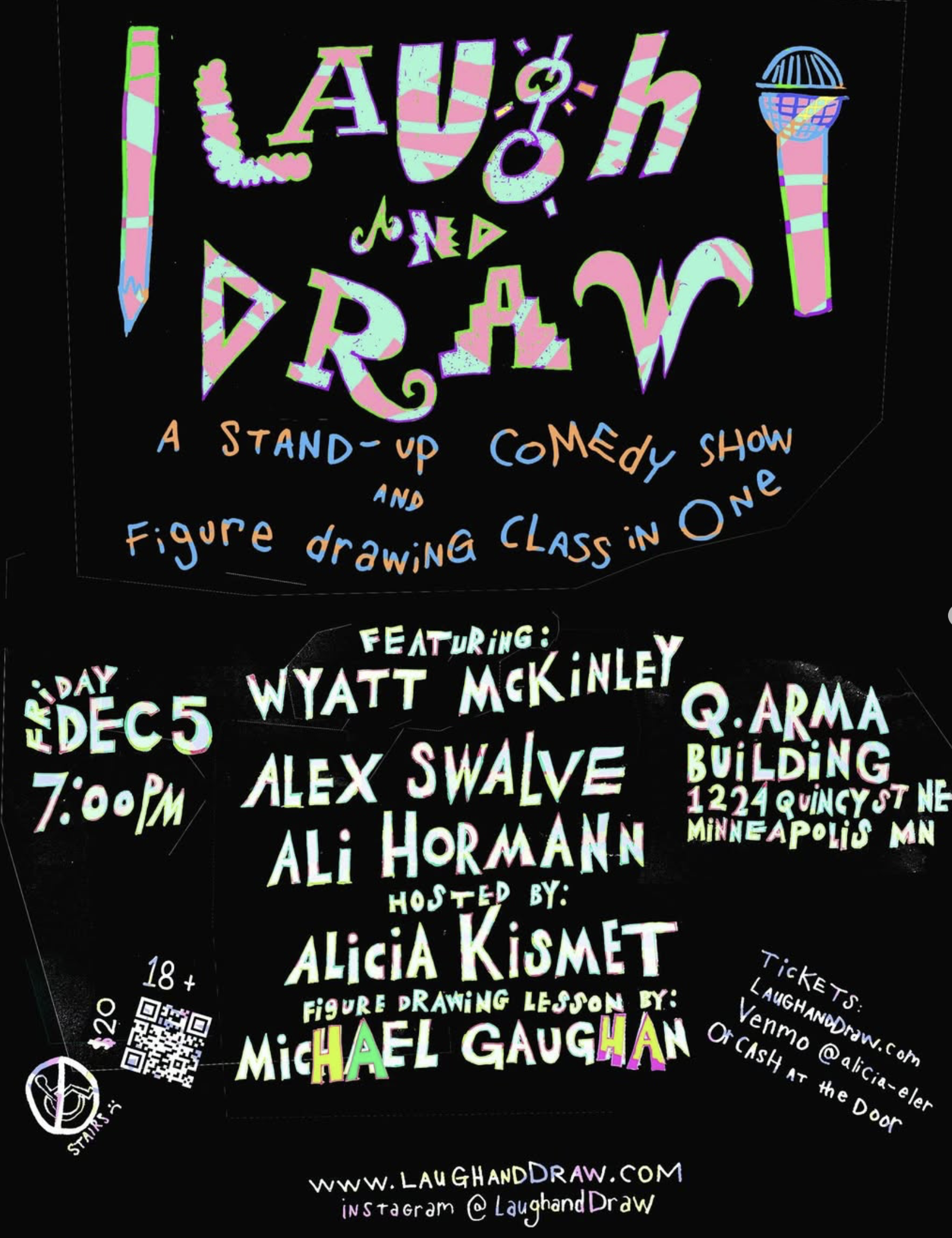 Comedy and figure drawing night with live standup comedians: Matt Dooyema, Ivy Evrard, and Cianna Violet